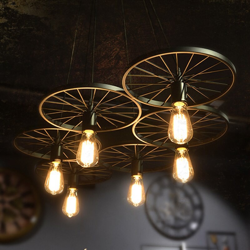 American Country Loft Metal Wheel Pendant Light Vintage Industrial Lighting 1 3 6 Heads Hanging Lamp For Bar Restaurant Cafe Pendant Lights Aliexpress