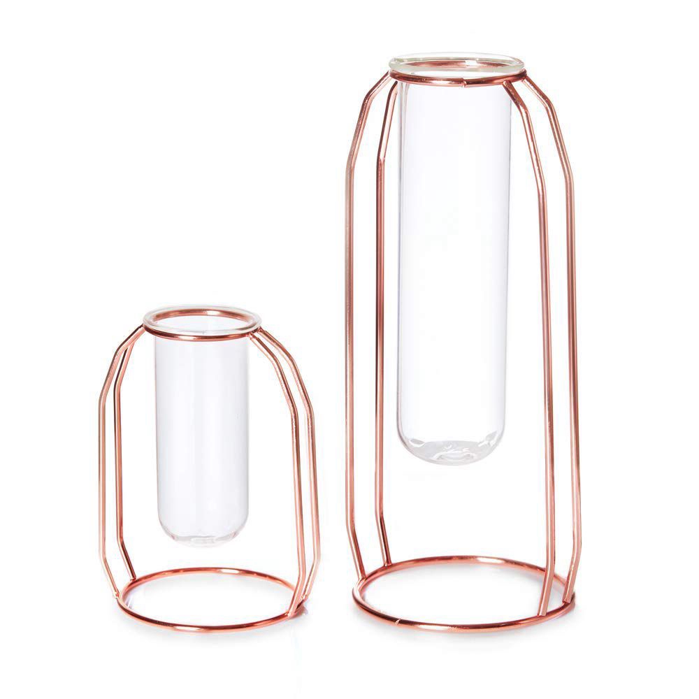 Vases Set Of 2 Metal Flower Vase Glass Vase Planter Terrariums Gold Vases Vase Plant Glass Vases Cylinder Vases For Decor Clear Vase Decorations For Living Room Rose Gold Shopee Indonesia