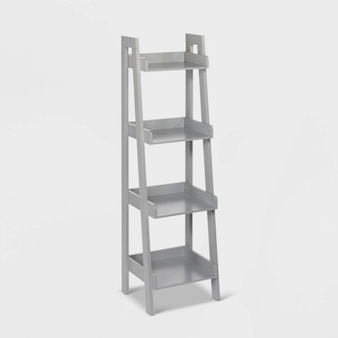4-tier storage shelf. Its unique leaning ladder space-saving tiered design adds stylish storage to your living space. Filled with shoes books blankets and more these shelving units are a stylish way to store your stuff.